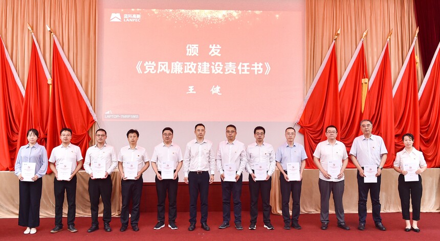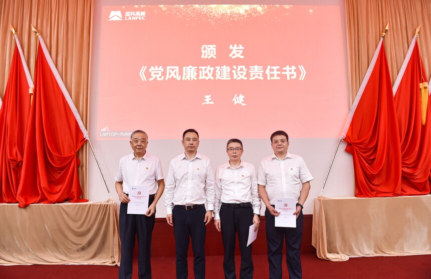 王健为基层党支部书记颁发《党风廉政建设责任书》。